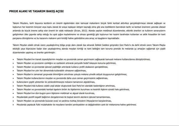 Taksim Square, which has been one of the most important elements of cities throughout history, has important historical and urban importance, as well as its main features such as being a communication source that allows many different urban activities to be carried out and gathers all segments of the society individually or collectively, as well as an important nationally important one. is a focal point (Ercan, 2012). Spatial arrangements made in the area, activity suggestions, and usage scenarios The main aims and concerns are not to lose this spotlight that it has throughout the country while developing it, and to transform it into a part of the city that is used by all segments of the society as it should be, and to make this gain the new identity of the place. Taking the pedestrianized area with Taksim Square as the base of the project area, various arrangements have been made in the pedestrianized area from the entrance of Istiklal Street to the Taksim-Maçka ecological pedestrian bridge, including Gezi Park.